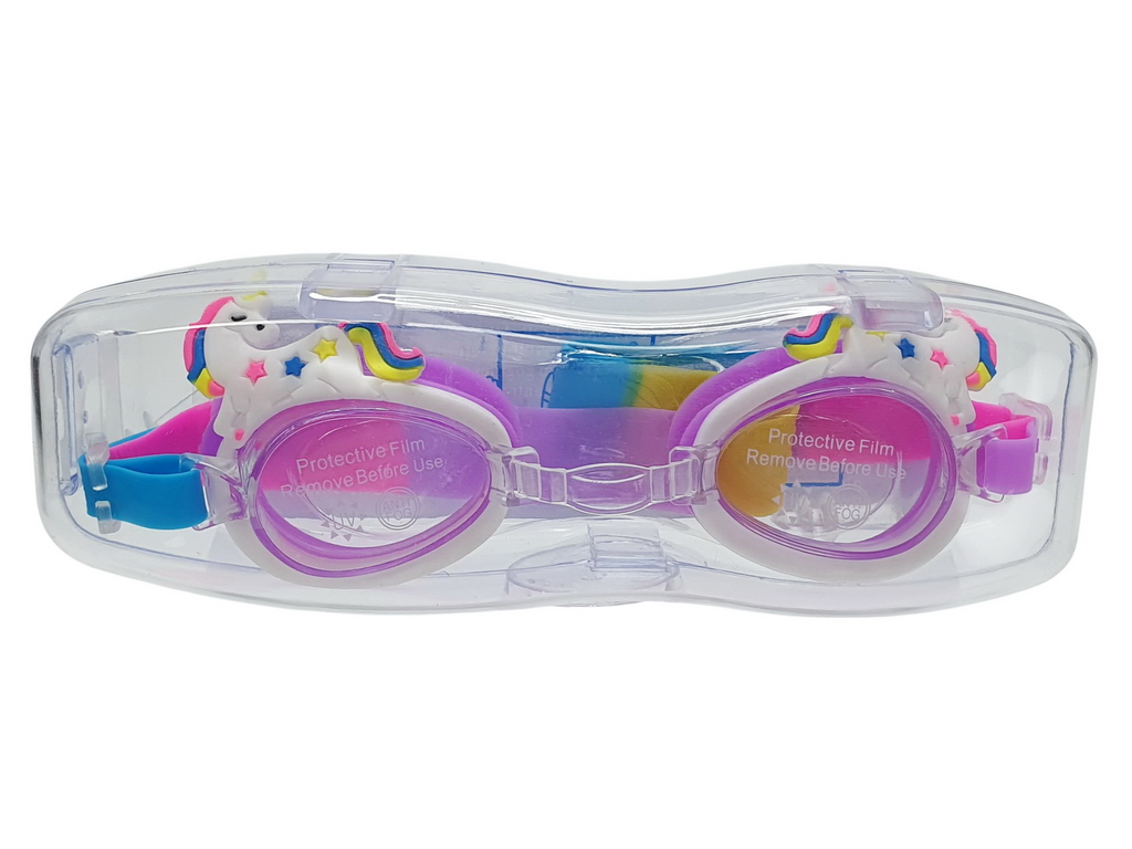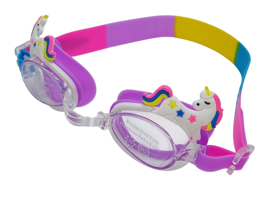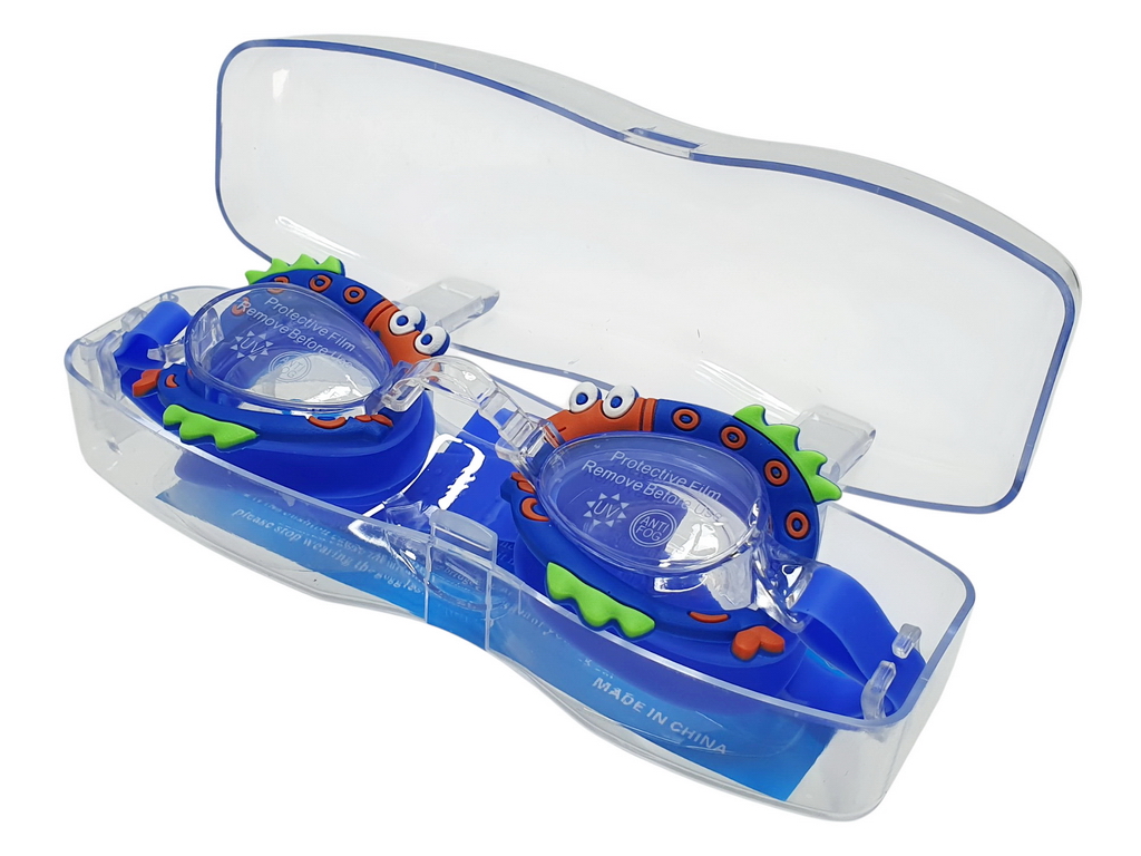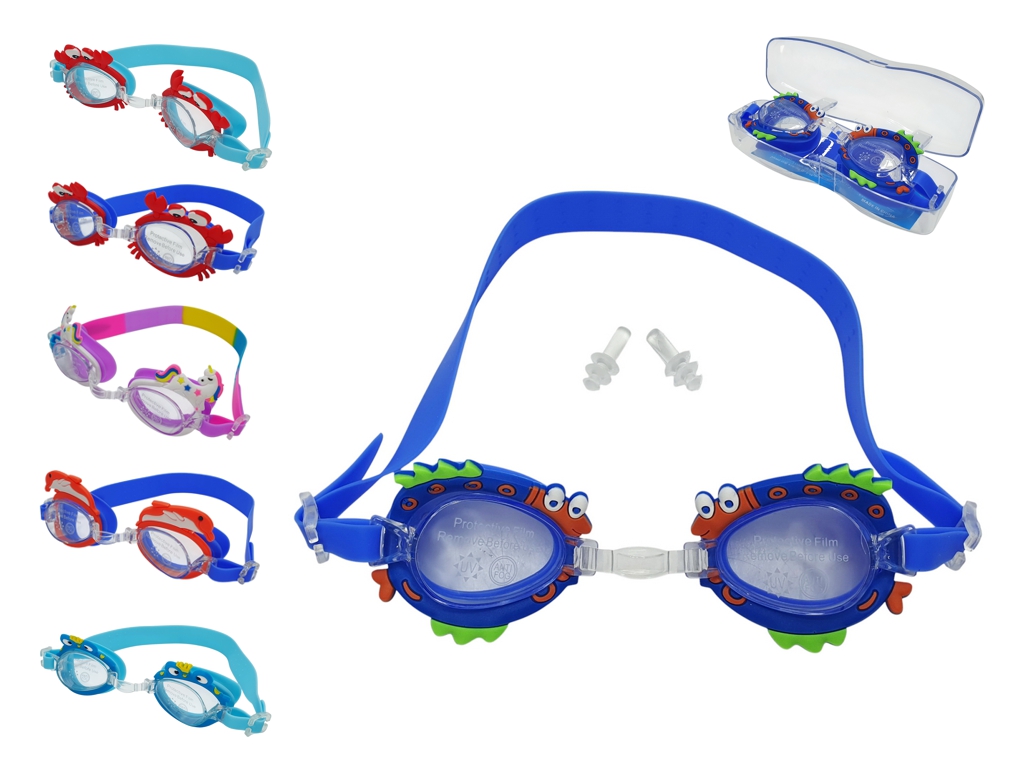 Веселі дитячі окуляри для плавання з 3D-дизайнами у вигляді крабів, динозаврів, єдинорогів та інших морських героїв. Забезпечують захист очей під водою і дарують радість кожному плаванню. М’який силіконовий ущільнювач і регульований ремінець гарантують комфортне прилягання. Лінзи мають антифог-покриття та захист від ультрафіолету. У комплекті футляр і беруші.