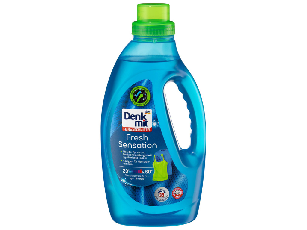 Засіб Fresh Sensation від Denkmit глибоко проникає у волокна білизни та ефективно видаляє неприємні запахи за допомогою інноваційної технології нейтрального аромату. Він також перешкоджає поглинанню нових запахів та ідеально підходить для синтетичних тканин і волокон, зокрема для спортивного одягу та виробів з віскози, еластану, мікроволокна, капрону, поліестеру, мікрофібри, поліефіру та інших матеріалів. Також зберігає структуру мікромембранних волокон.