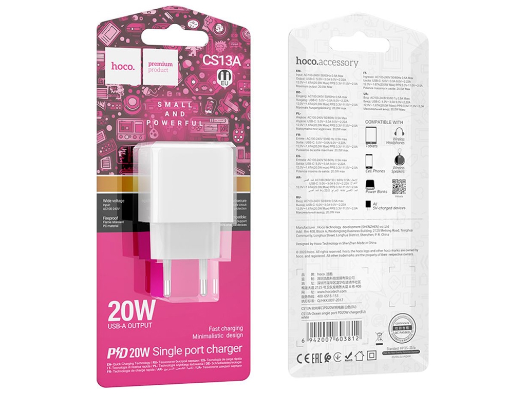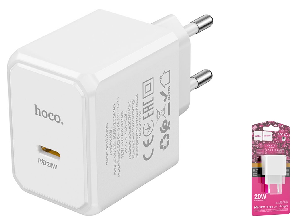 Мережевий Зарядний Пристрій Hoco CS13A 1USB-C PD/QC 20W Колір Бiлий