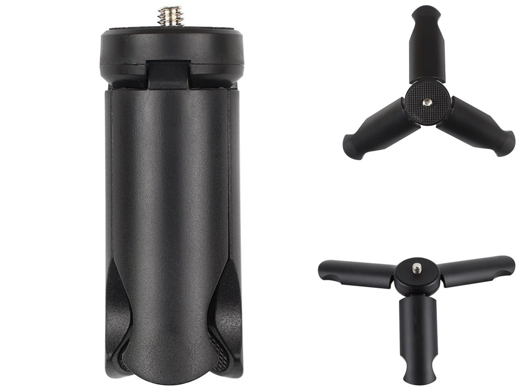 Штатив для екшн-камер - це універсальна тринога, яка надасть можливість стійко встановити на горизонтальній поверхні сумісні екш-камери, фото- або відеокамери, кільцеві лампи, тримачі для смартфона та інші пристрої, сумісні зі стандартним болтовим кріпленням 1/4;. Аксесуар має компактні розміри і невелика вага, тому з легкістю поміститься, наприклад, у сумці разом з камерою або навіть у кишені.Для складної конструкції та невеликої товщини, він може використовуватися як подовжувач ручки стабілізатора.Штатив виготовлений з міцного ABS пластику, має стійкі ніжки з Протиковзні накладки, його круглий майданчик з болтовим кріпленням має захисну накладку, яка запобігає утворенню потертостей на корпусі камери Довжина штатива дорівнює 75мм.