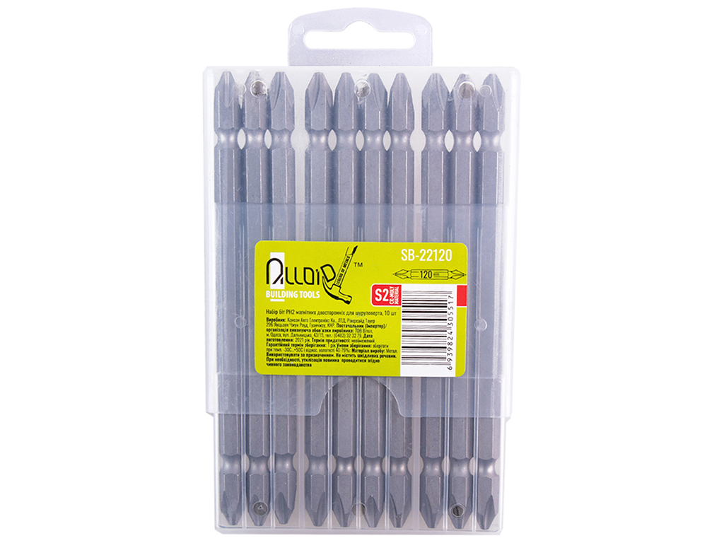 Набір біт магнітних двостор. для шуруповерта Alloid, PH2 120мм, S2, SB-22120 (ціна за набір 10шт)