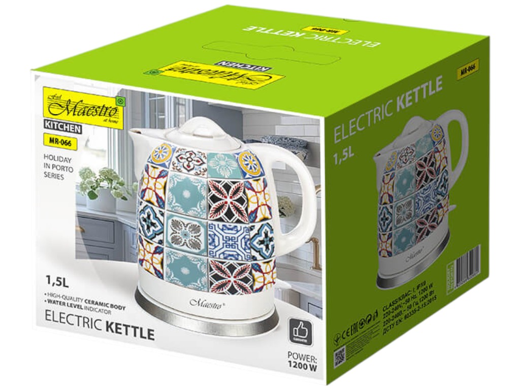 Чайник електричний Maestro Holiday in Porto, 1200Вт, 360 °, кераміка, 1,5л, 24х22х17см