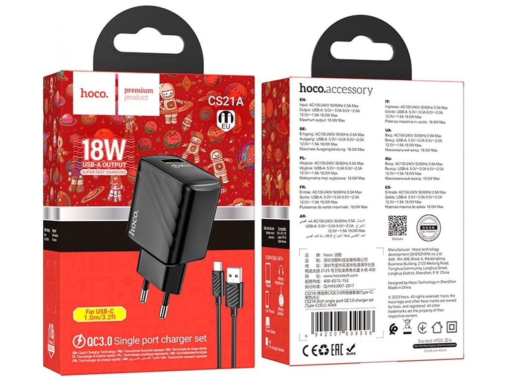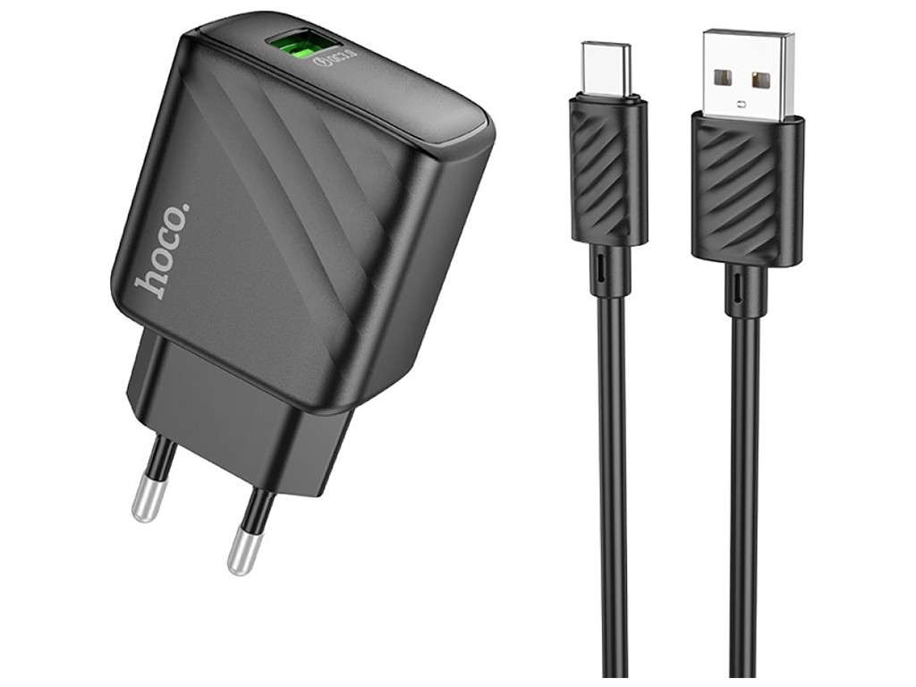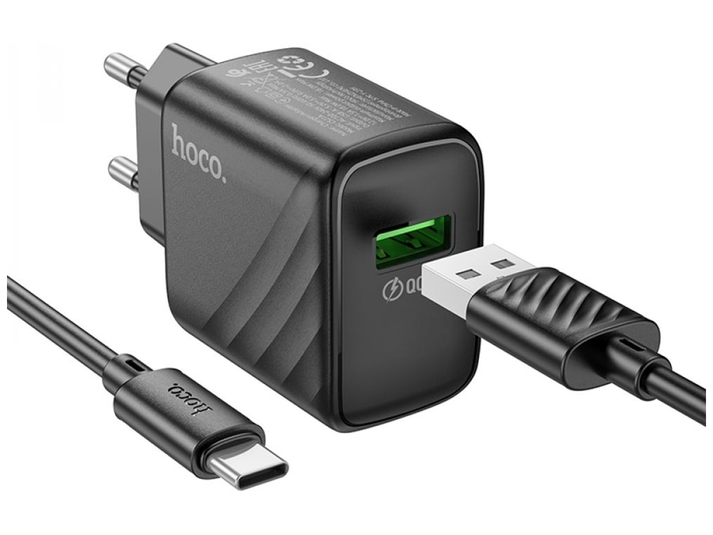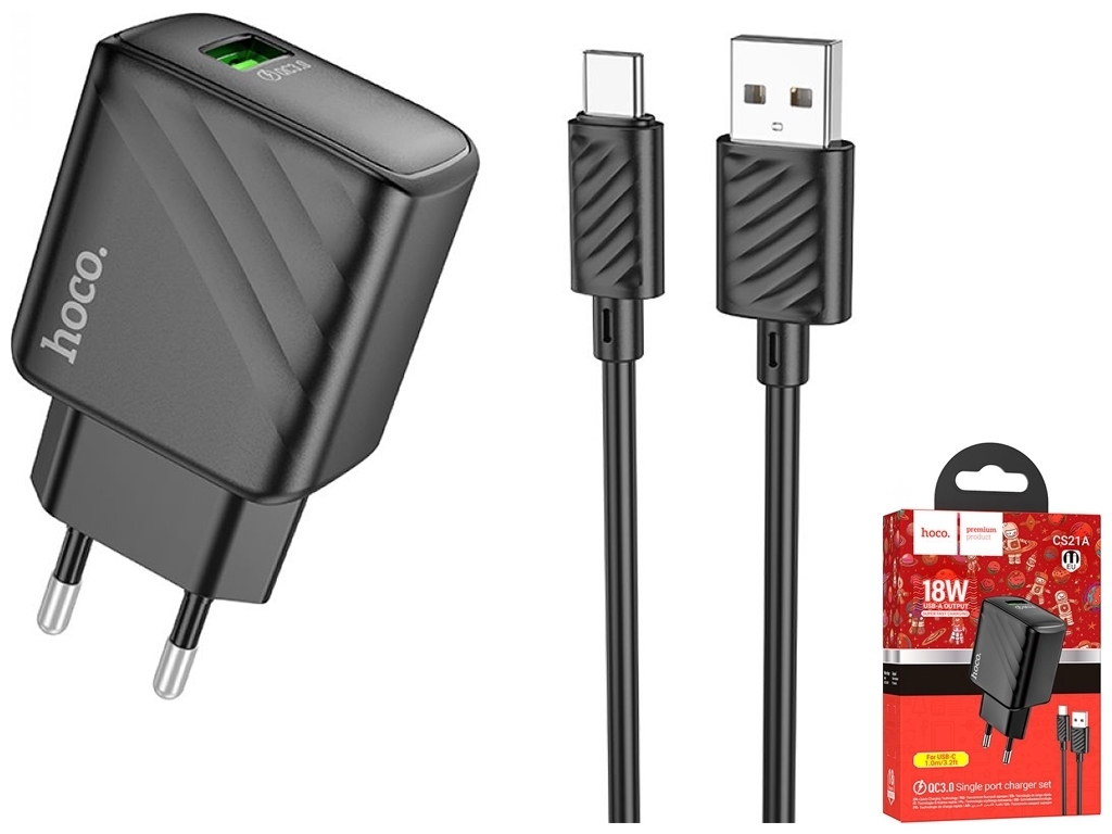 Мережевий Зарядний Пристрій Hoco CS21A 1USB QC 18W+USB to Type-C Колір Чорний
