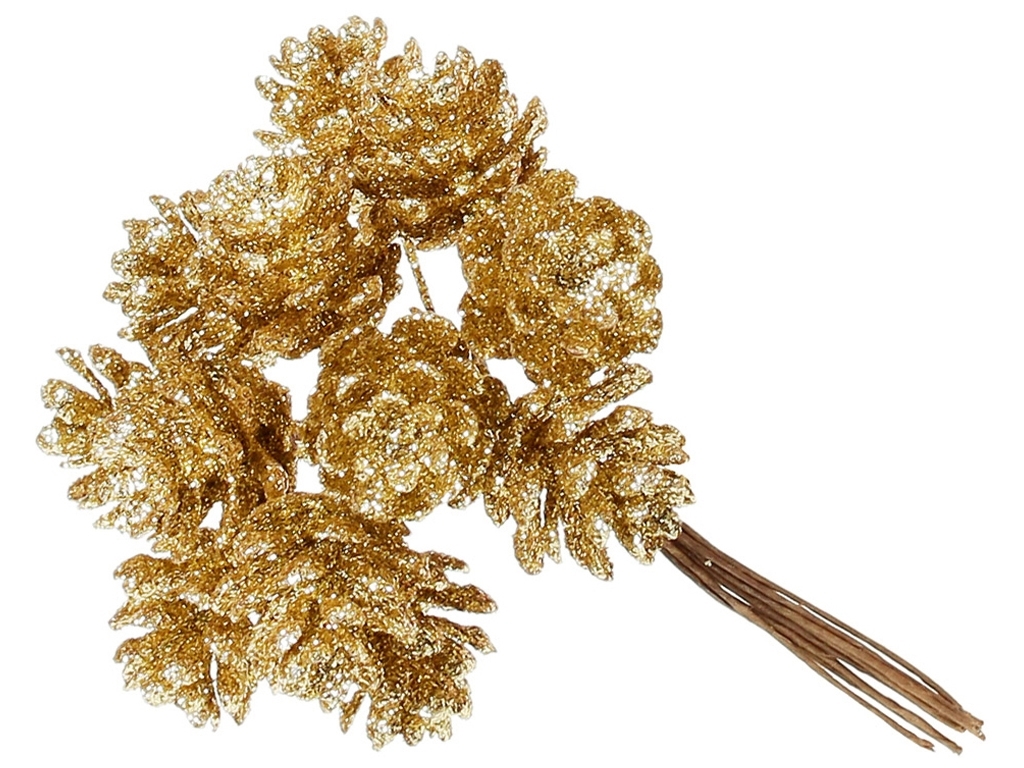 Міні - шишки декоративні 12шт у пучку, 12см, колір - золото