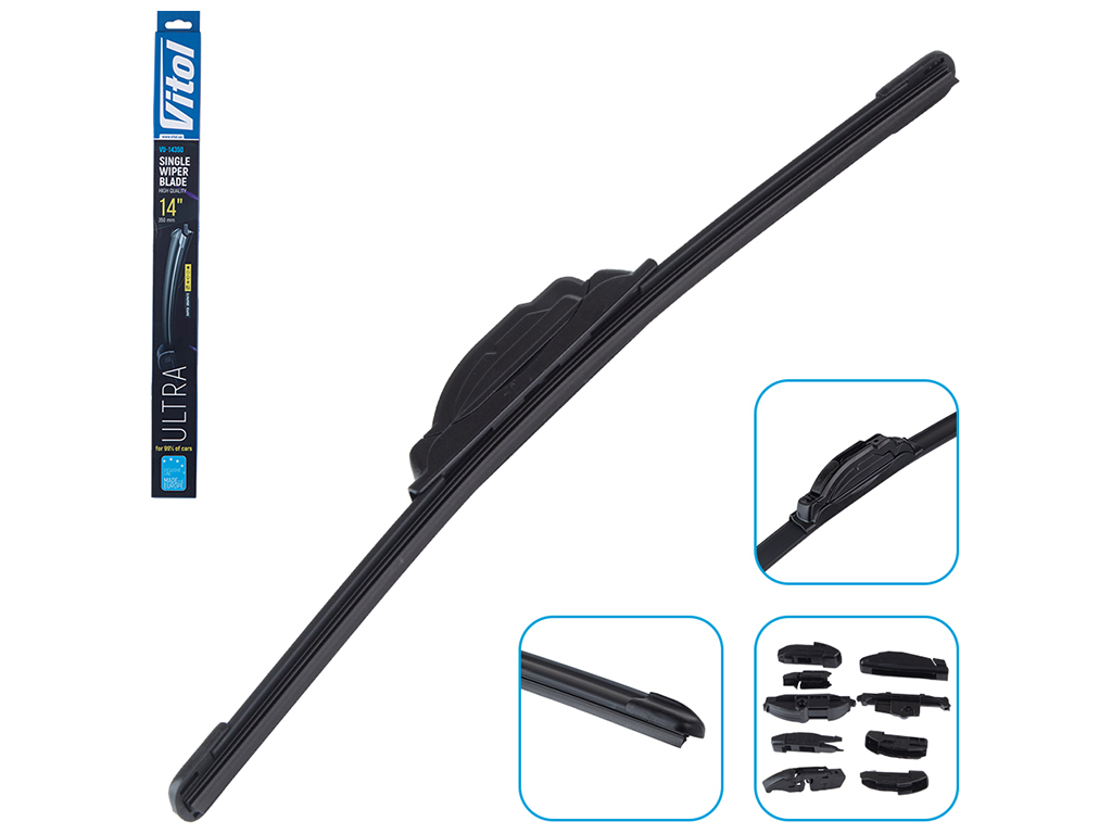 Щітка склоочищувача безкаркасна VITOL ULTRA 14", 35см, 9 адаптерів (VU-14350)