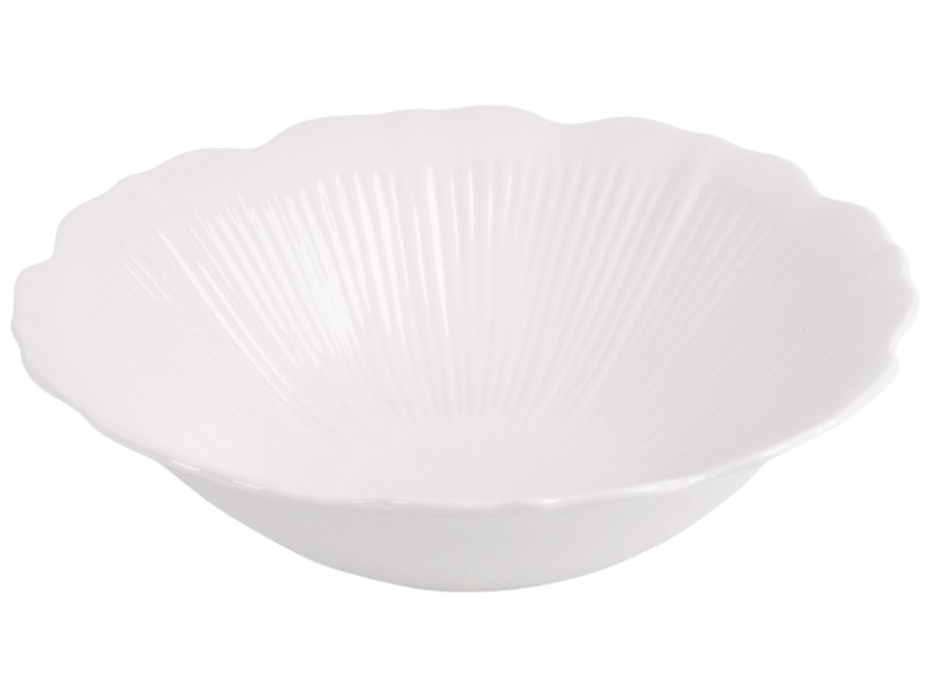 Блюдо з порцеляни Pearl створене в витонченій округлій формі з плавними хвилястими краями, які надають йому елегантного й легкого вигляду. Внутрішня поверхня прикрашена м’яким рельєфом у вигляді розходящихся ліній, що нагадують структуру морської мушлі. Білосніжний колір підкреслює чистоту та гармонійність форми, створюючи відчуття охайності й легкості. Виріб підходить для подачі салатів, фруктів, десертів, гарнірів і закусок, красиво виділяючи колір та фактуру приготованих страв. Глянцева поверхня гладка, стійка до потемніння й не вбирає запахи. Порцеляна вирізняється щільною структурою та міцністю, зберігаючи бездоганний зовнішній вигляд навіть при регулярному використанні. Матеріал безпечний для контакту з продуктами, не змінює їхній смак і не вбирає вологу. Виріб стійкий до появи дрібних подряпин, зберігаючи глянець і білизну протягом усього терміну експлуатації. Невисокі краї роблять блюдо зручним для порційної подачі, створюючи охайну й збалансовану композицію на столі. Така форма доречна як у домашніх умовах, так і в кафе, ресторанах чи банкетних залах, де цінується стримана елегантність. Догляд за порцеляною простий: м’яка губка, тепла вода й нейтральний мийний засіб повністю очищають поверхню, зберігаючи її гладкість і блиск. Для видалення жирових слідів можна використати розчин харчової соди. Миття в посудомийній машині допустиме при стандартних режимах, а використання в мікрохвильовій печі безпечне при помірному нагріванні. Виріб компактний при зберіганні, добре поєднується з іншою посудою серії Pearl і підходить для складання сервізів. Упаковане блюдо в технічну коробку, що захищає його під час транспортування та придатна для складського зберігання.