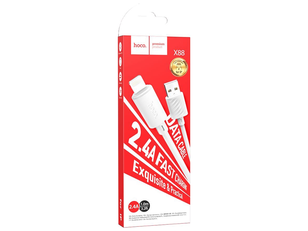 Кабель USB Hoco X88 Gratified Lightning 2.4A, Білий