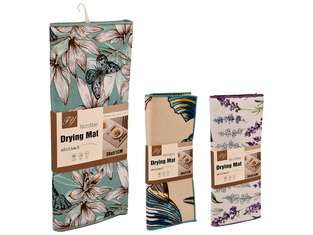 Килимок дозволяє швидко висушити вимиті тарілки, склянки, чашки, столові прилади. Прекрасно вбирає вологу, завдяки чому, посуд на ньому висихає швидко. Синтетичні волокна килимка для сушки посуду створюють менш сприятливі умови для розмноження бактерій і цвілі.
