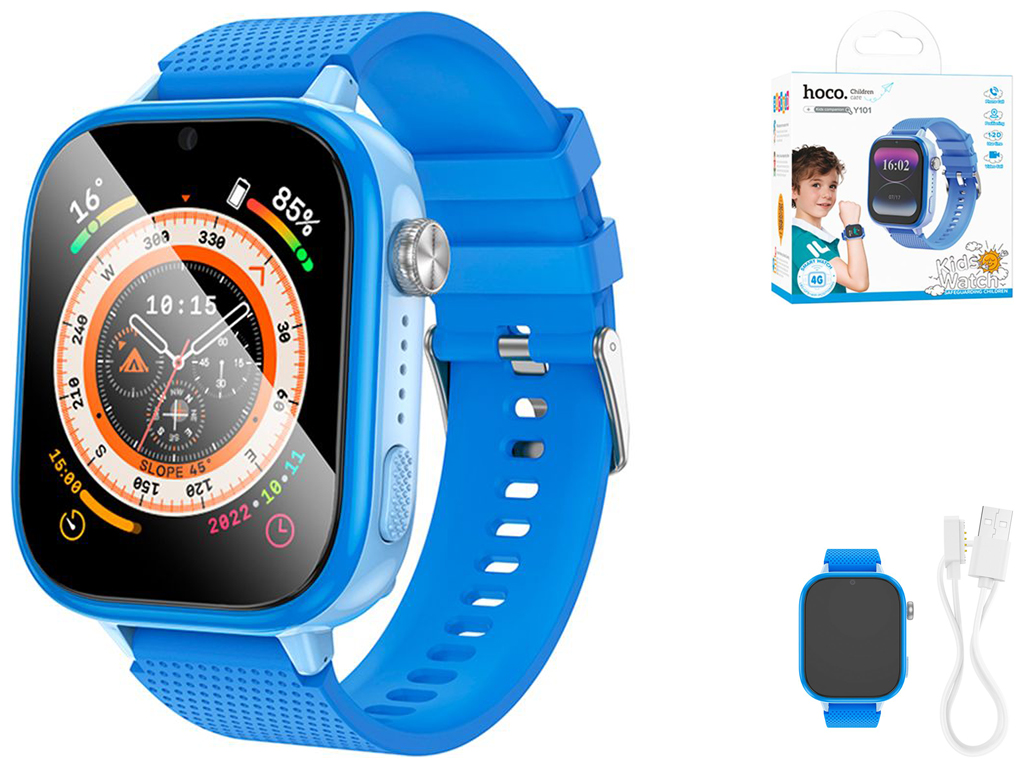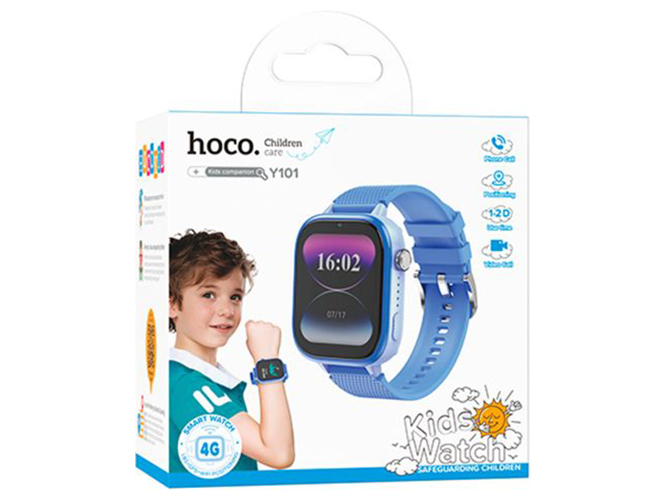 Дитячий смарт годинник Hoco Y101 ідеальний вибір для повсякденного використання. Надійний ремінець з якісного силікону з приємною на дотик текстурованою поверхнею і класичною застібкою-пряжкою. Міцний корпус із захистом від води та пилу за стандартом IP65. Якісний IPS дисплей з екраном 2.5D, діагоналлю 1,83 дюйма і роздільною здатністю 240x284 пікселів. Інтуїтивно зрозумілий інтерфейс із підтримкою 22 мов, включно з українською. Android 8.1 з можливістю встановлення додатків з App Store. Слот для SIм карти з підтримкою мереж четвертого покоління - 4G (крім країн Америки). Якісна камера (30W), чутливий мікрофон і досить гучний динамік. Сучасні модулі Wi-Fi, GPS і Bluetooth для доступу до мережі інтернет, синхронізації зі смартфоном і точного позиціонування. Продуктивна основна мікросхема SL8521E, 1GB оперативної пам'яті та 16GB постійної. Вбудований акумулятор ємністю 680мAh - 1-2 дні роботи в звичайному режимі. Магнітний конектор для зарядки за допомогою комплектного USB кабелю.