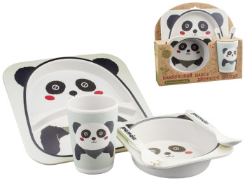 Набор детской бамбуковой посуды 5 предметов Stenson "Панда" (тарелки, вилка, ложка, стакан)