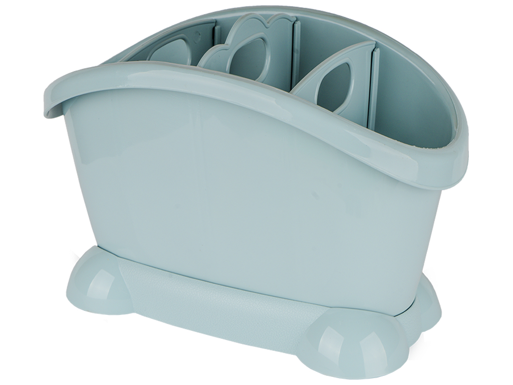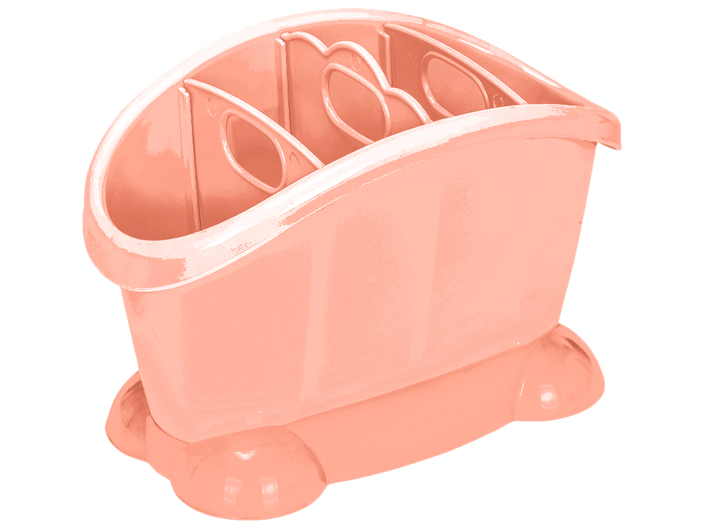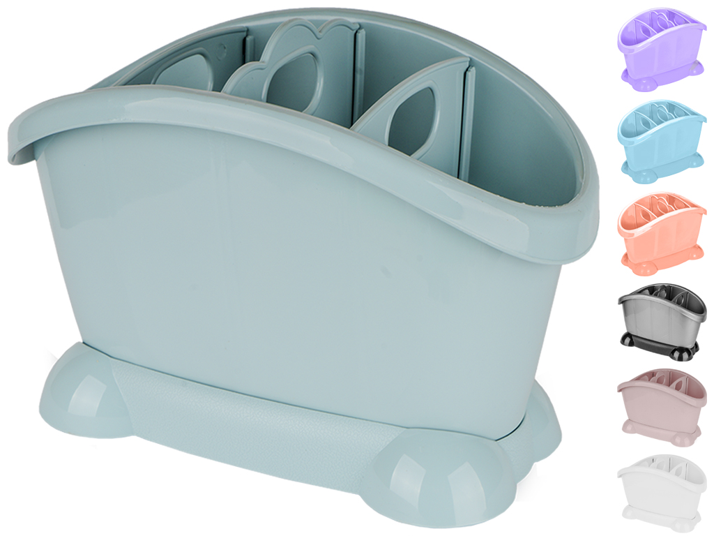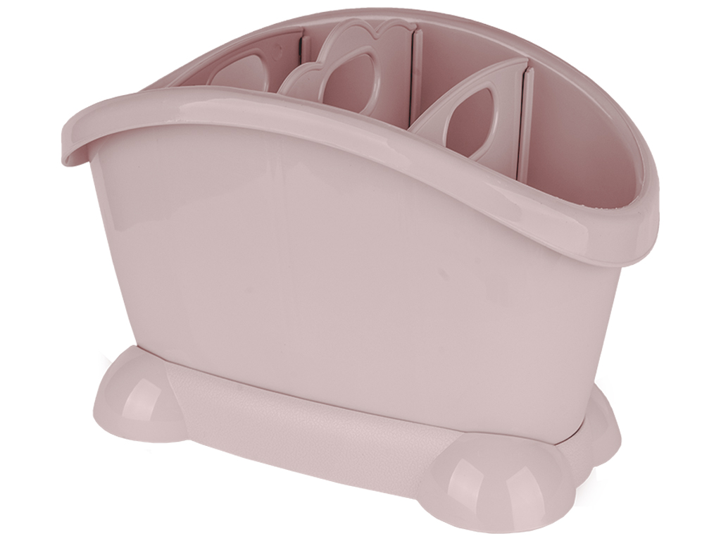Размер: 18,3х9,5х14,2см. Материал: пластмасса. Цвета: белый, персиковый, бирюзовый, сиреневый. Подставка для столовых приборов предназначена для организации хранения кухонного инвентаря. Для сортировки приборов предусмотрено 4 секции. Подставка для столовых приборов выполнена из пластика высокого качества. Этот материал характеризуется высокой износостойкостью, прочностью, отсутствием микропористости - не поддается загрязнению бактериями, нейтральный по отношению к кислотам и щелочам.